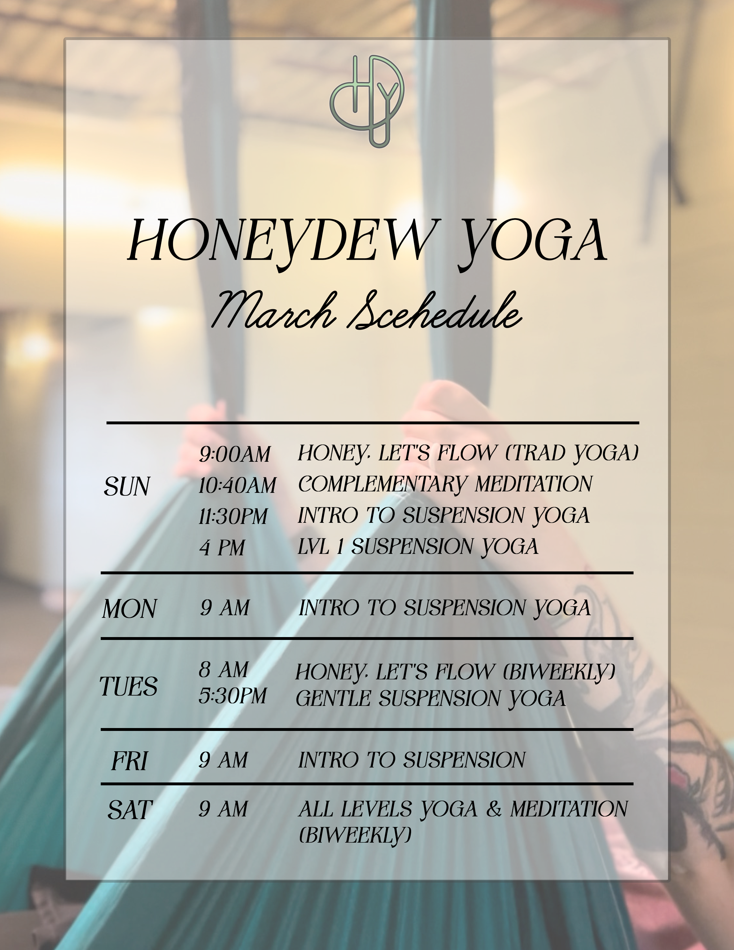 Located in the heart of Muscle Shoals, Honeydew Yoga offers small-group suspension yoga classes designed to support your body, calm your mind, and restore your energy.