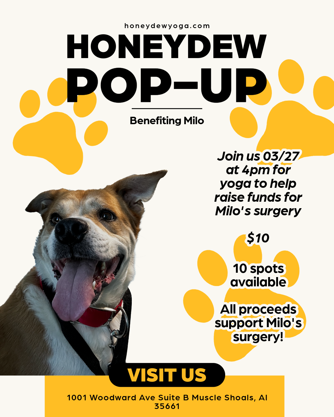 An encouraging play on words, 'honey, do yoga!' welcomes you to do just that, to play through yoga.